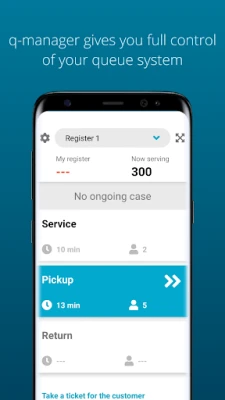 You can see the current queue time as well as how many queues under each queue type. Choose the checkout that you manage and then call customers by clicking on your queue type. You also have the opportunity to take a digital queue ticket for your customer.